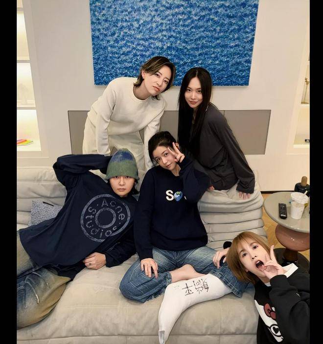 近日,陈妍希在社交平台上分享了一组与好友杨丞琳、周笔畅、王霏霏、李斯丹妮的聚会合照,并配文写道:姐妹欢聚,很是开心呀!因为腿部受伤,她选择在家静养,而好友们特意上门探望。照片中,陈妍希与姐妹们笑容灿烂,同框的画面充满温暖与欢乐。